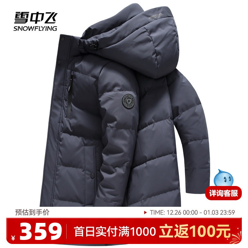 雪中飞2025冬新款羽绒服男士中长款爸爸黑色简约保暖中老年外套