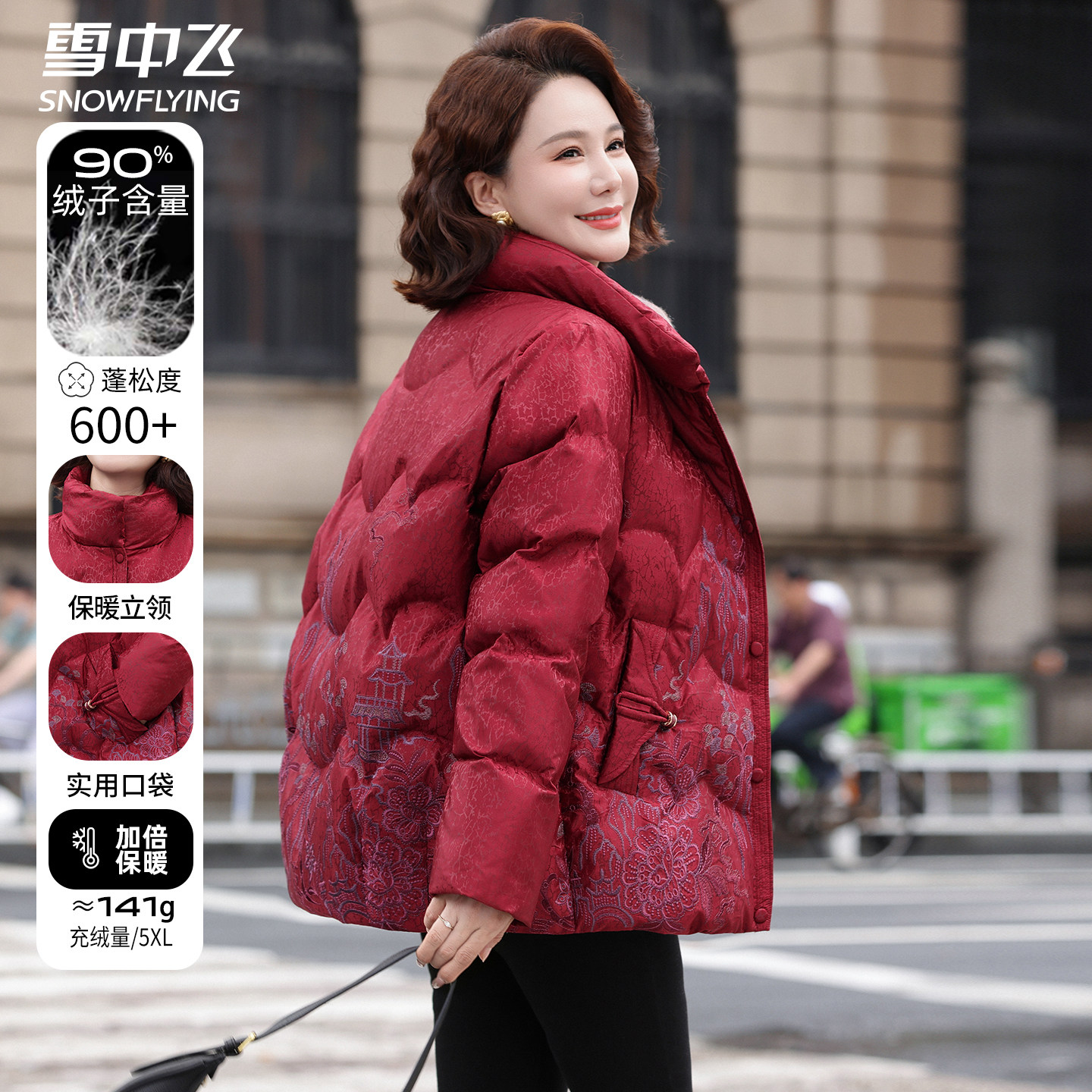 雪中飞中年妈妈短款羽绒服女款立领冬装2025年秋冬新款中老年外套