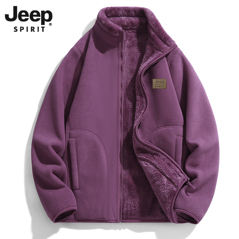 JEEP吉普中老年外套女冬季防寒保暖加绒加厚抓绒衣妈妈双面穿上衣
