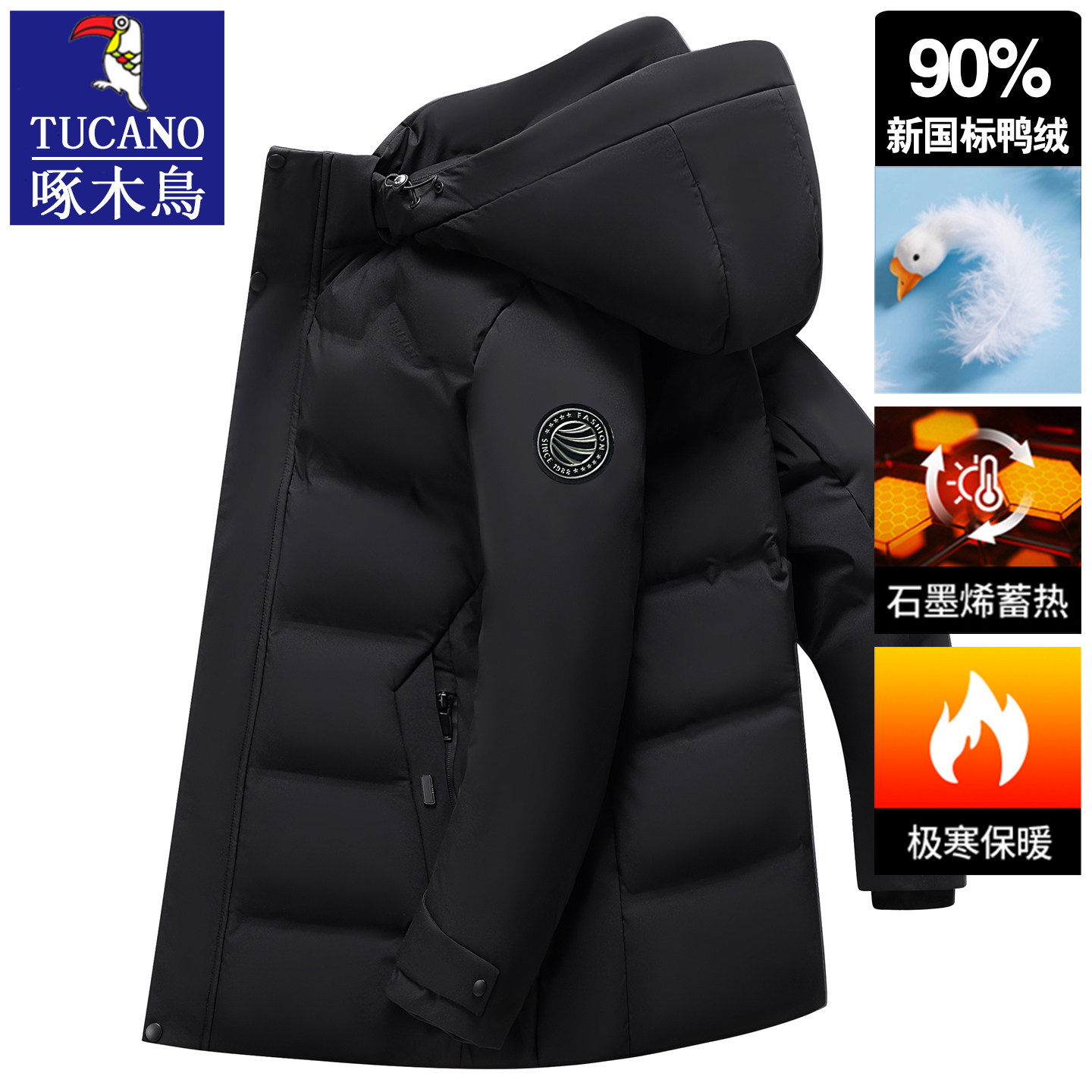 啄木鸟羽绒服男士中长款加厚保暖中年爸爸2025新款冬季中老年外套
