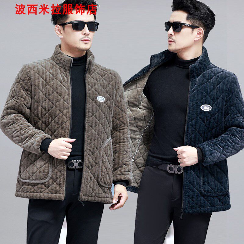 冬季加绒加厚棉衣男士休闲爸爸派克服防寒保暖羽绒棉服中老年外套