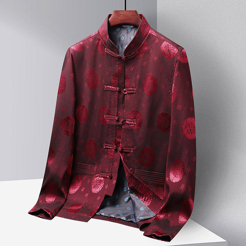 唐装男中老年外套春秋季休闲中式长袖外套盘扣高档复古宴会中山装