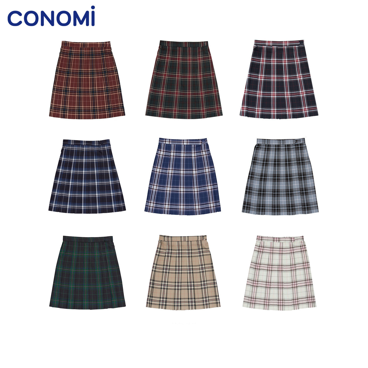 conomi日系学院风羊毛百褶裙猪肝格半裙软妹正版JK制服裙jk格子裙