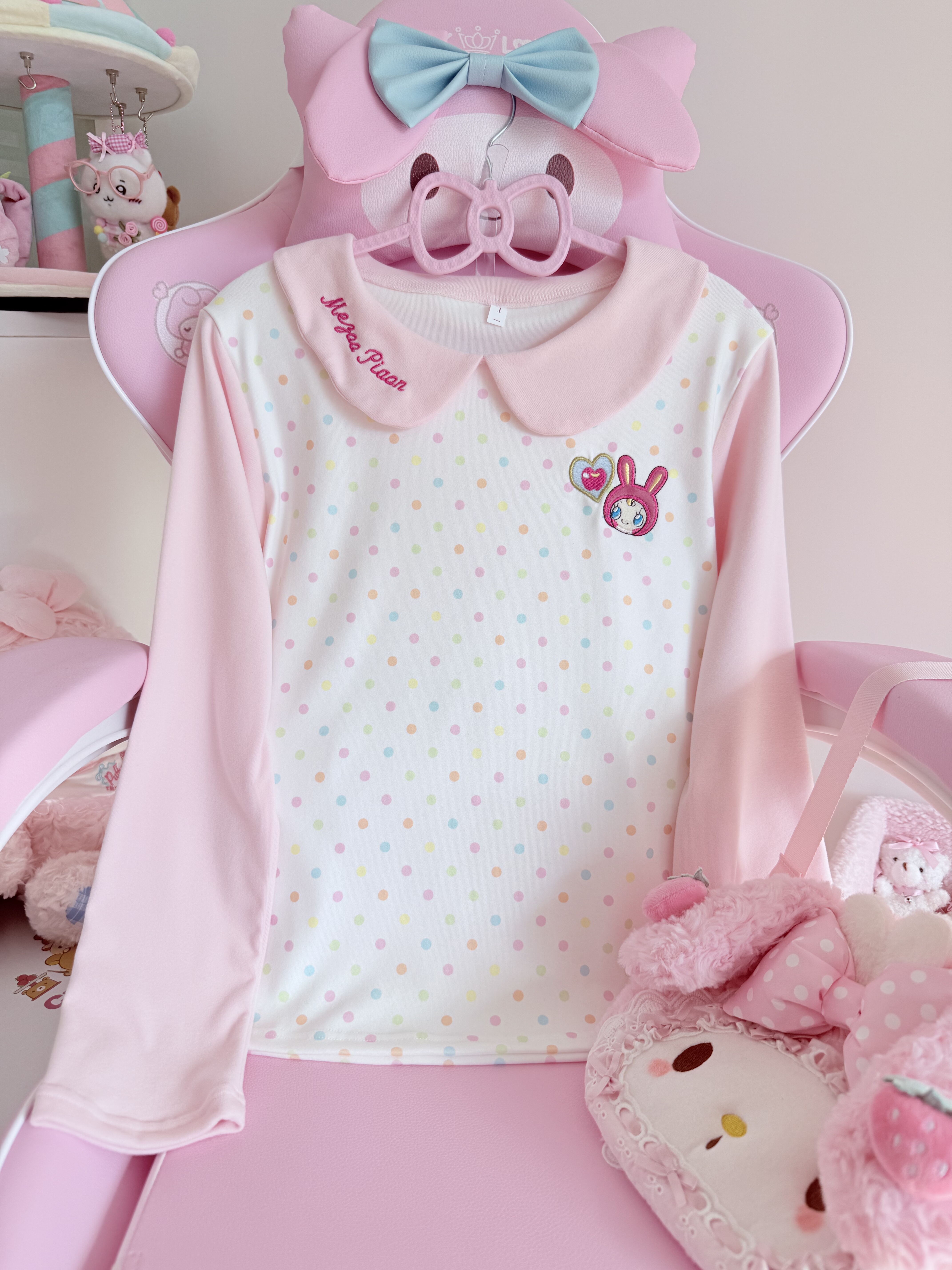 原创女儿服日系mp波点可爱娃娃领软妹T恤秋冬甜美外穿打底衫上衣