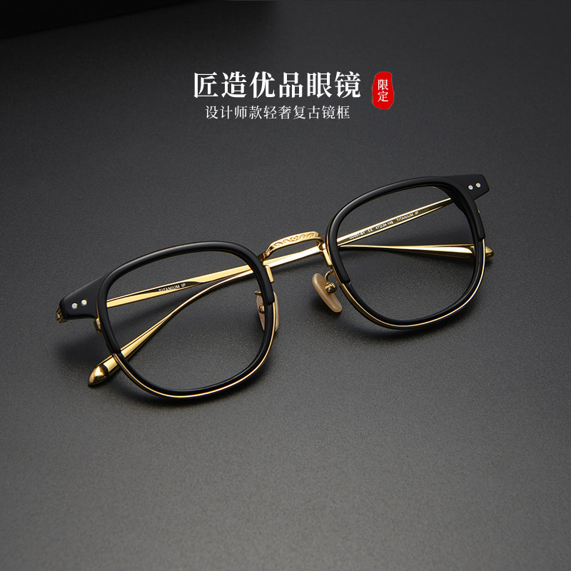 日本手造设计感超轻纯钛镜架男复古镜框威视杰眼镜高度近视潮流款