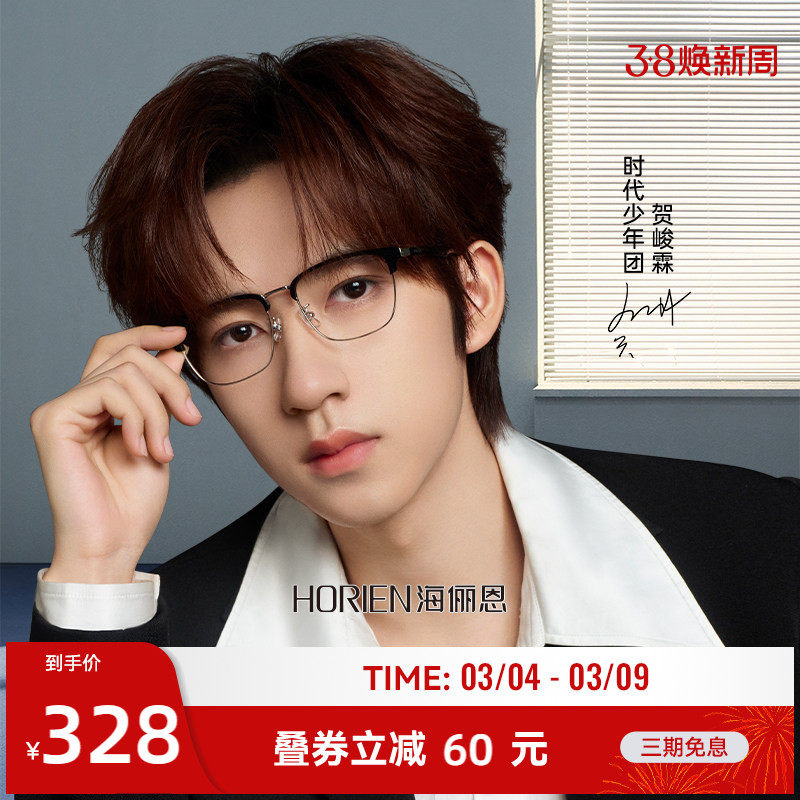 海俪恩复古镜框明星同款素颜超轻半框眼镜男女近视度数可配N75024