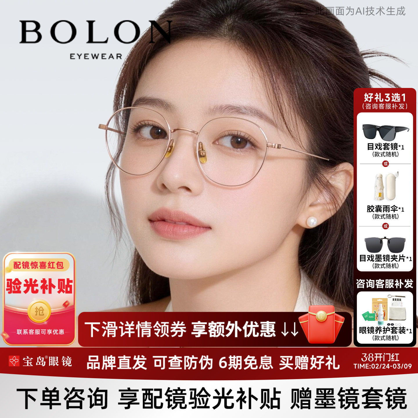 BOLON暴龙眼镜25新品近视镜架钛复古镜框可配度数定制框女BJ7260