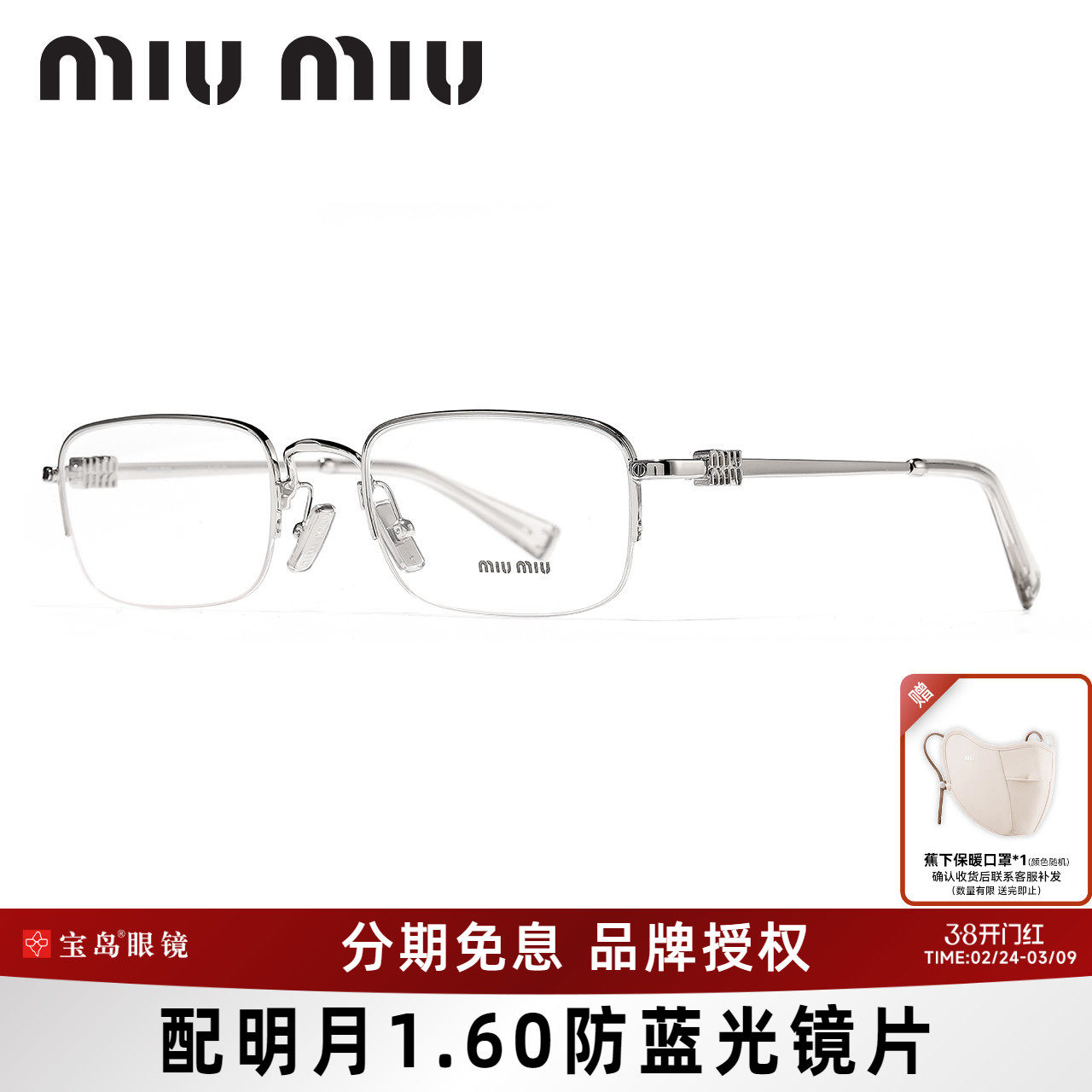 缪缪MIUMIU眼镜架小框女士商务静姐复古镜框可配高度近视镜片52wv