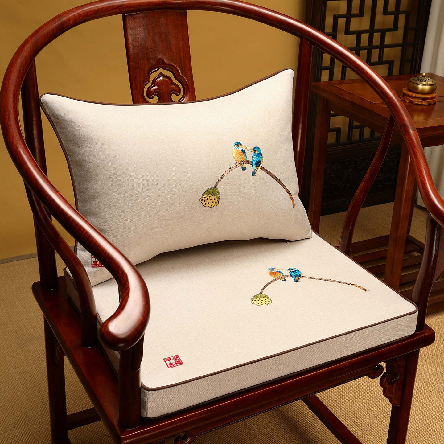 新中式红木沙发椅子垫乳胶坐垫实木圈椅太师椅茶桌座椅垫茶椅垫子