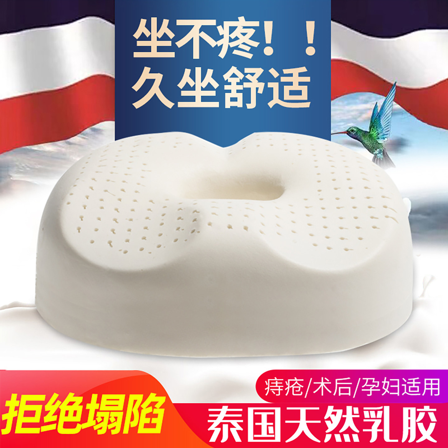 泰国天然乳胶坐垫防屁股痛屁垫加厚办公室久坐痔疮减压术后专用垫