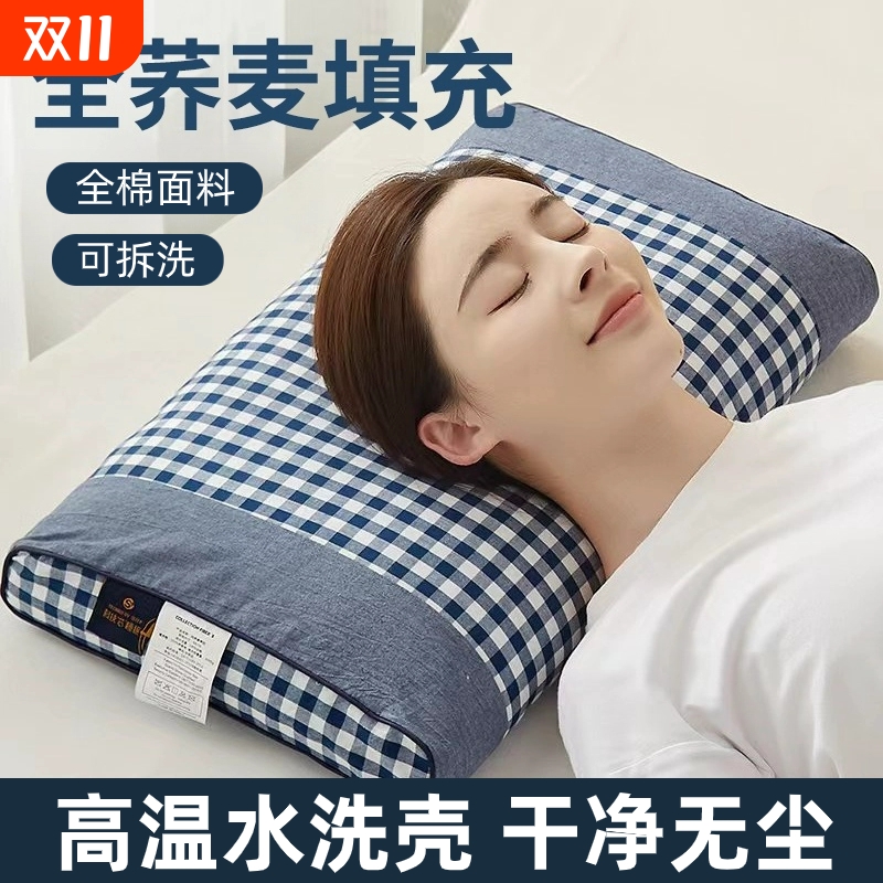 纯棉水洗棉苦荞麦壳枕头枕芯助睡眠护颈椎家用男生女生舒适荞麦皮