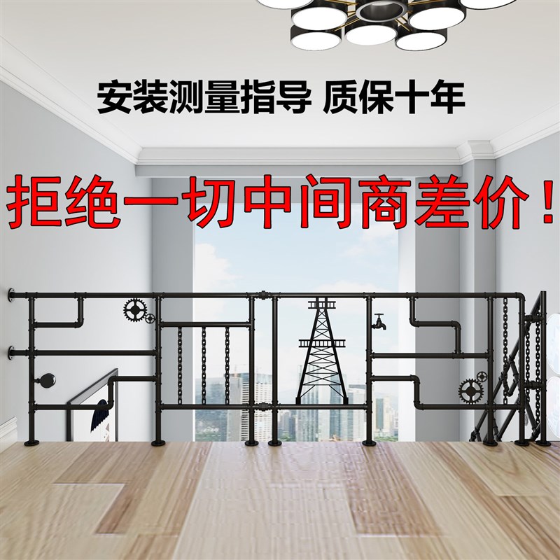 铁艺护栏家用室内现代简约楼梯扶手工业风N阁楼围栏定制防滑栏杆