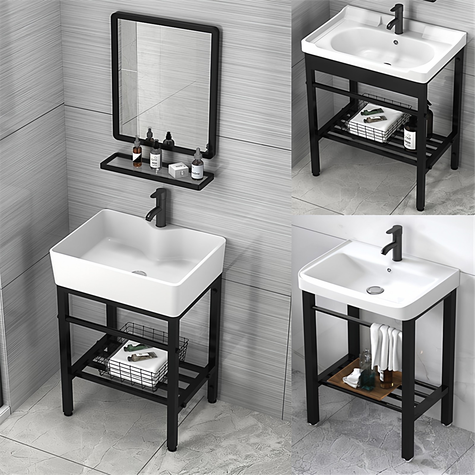 落地式组合卫生间洗漱台小户型不锈钢支架洗手面盆池洗脸盆浴室柜
