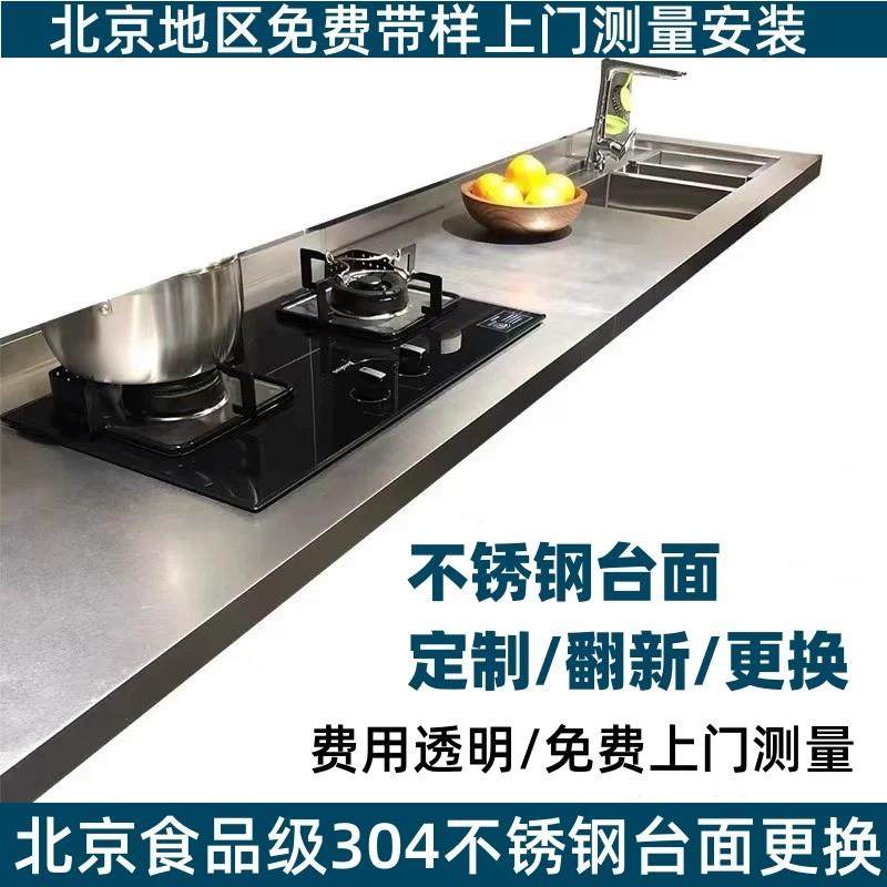 北京实心304不锈钢台面定制防刮花整体橱柜定做翻新厨房灶台面板