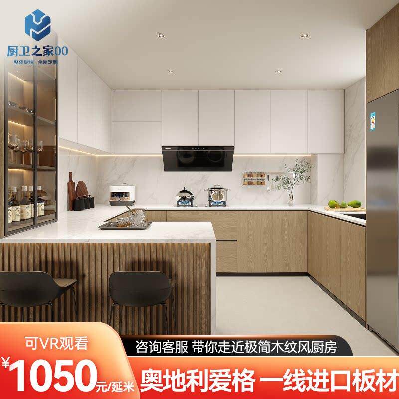 北京厨房家用整体橱柜定做极简木纹风开 放式整体橱柜定制石英石
