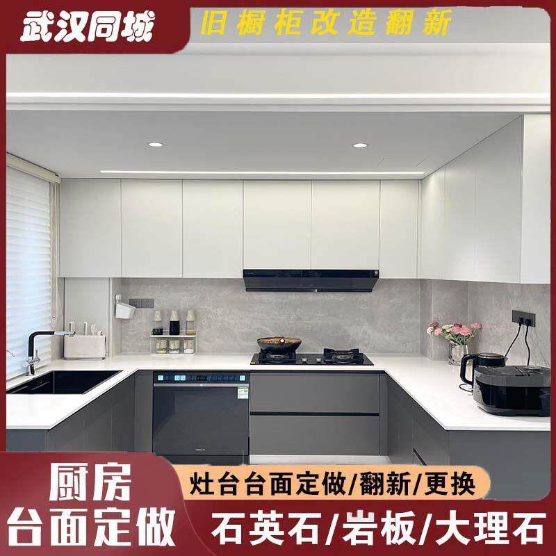 武汉旧厨房改造换新橱柜定制换新石英石岩板厨房台面整体橱柜定做