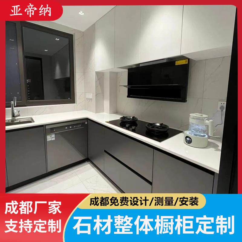 成都整体橱柜定做家用大理石厨房石材岩板石英石台面定制装修一体