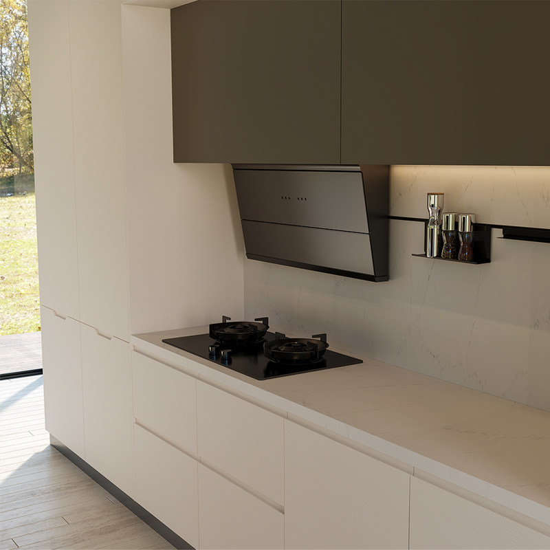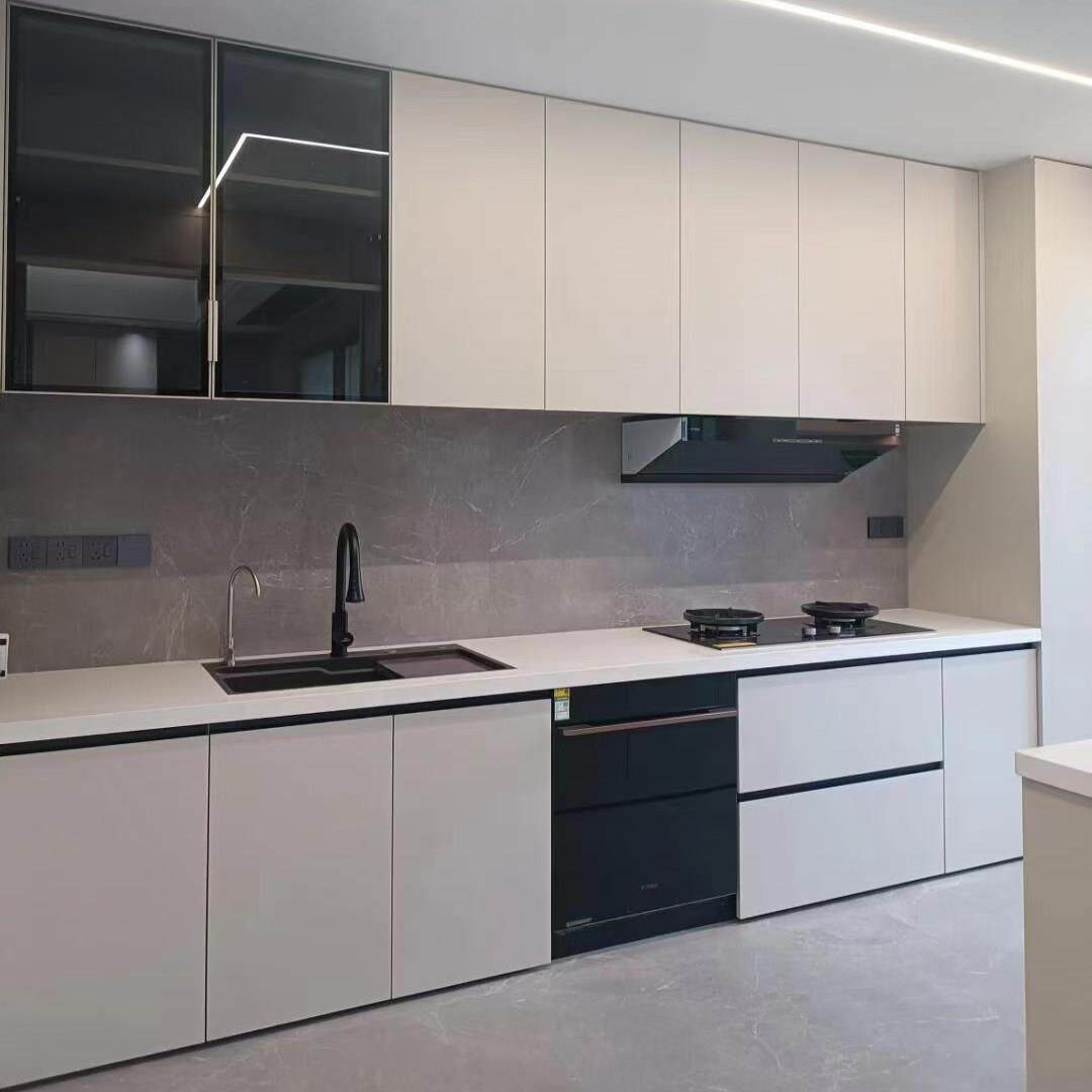 杭州整体橱柜定做现代简约柜体免拉手厨房门板石英石台面一体橱柜