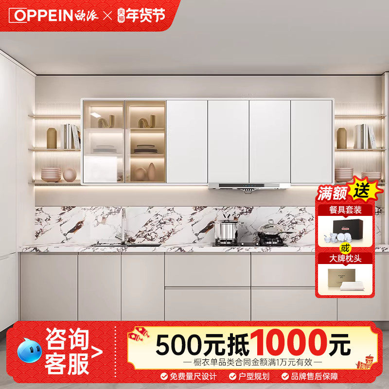 官方金牌厨柜橱柜定制厨房家用整体石英石台面全屋定制一体式灶台