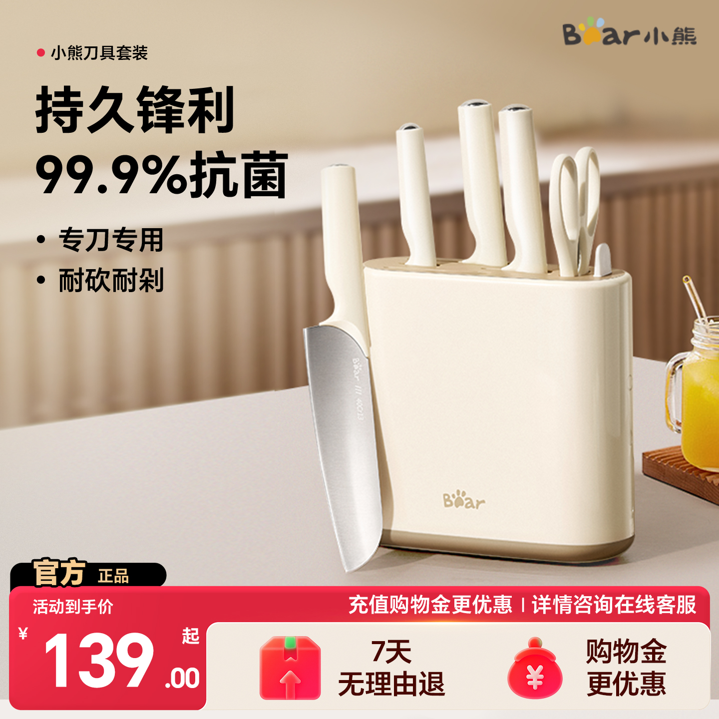 小熊刀具厨房套装组合不锈钢菜刀水果刀剪刀全套抗菌刀架防锈厨具