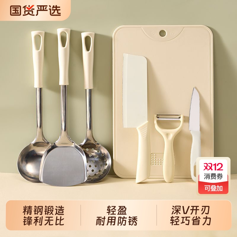 十八子作厨具套装菜刀菜板二合一厨房刀具锅铲子砧板组合全套家用