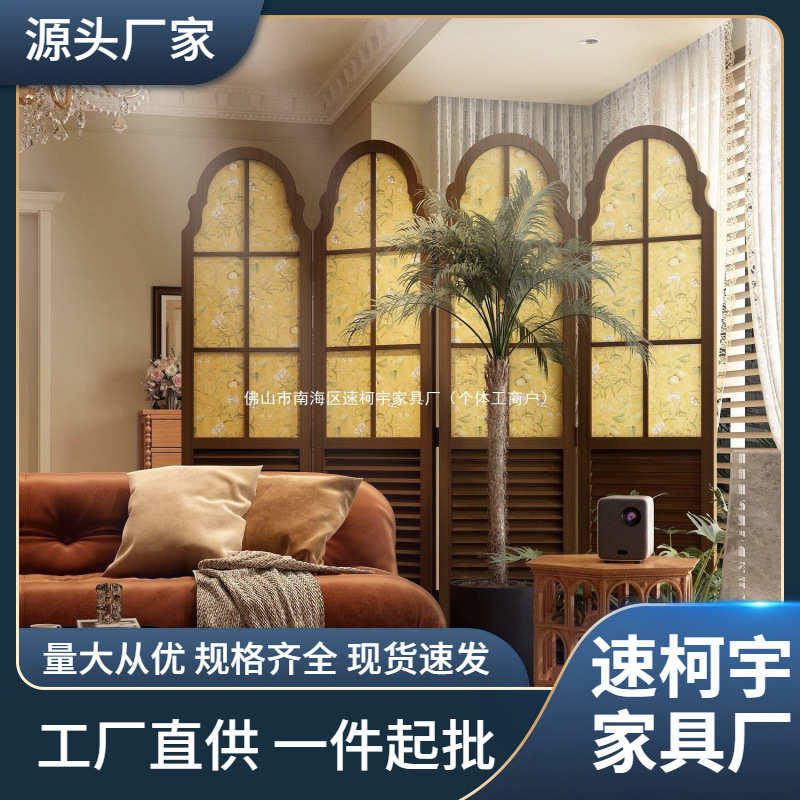 美式复古欧式屏风隔断客厅酒店装饰移动半透遮挡玄关折叠折屏实木