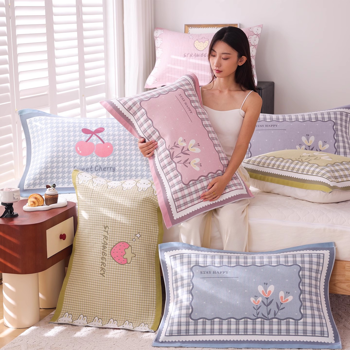 纯棉纱布泡芙枕巾成人家用加厚卡通可爱柔软透气学生全棉枕头盖巾