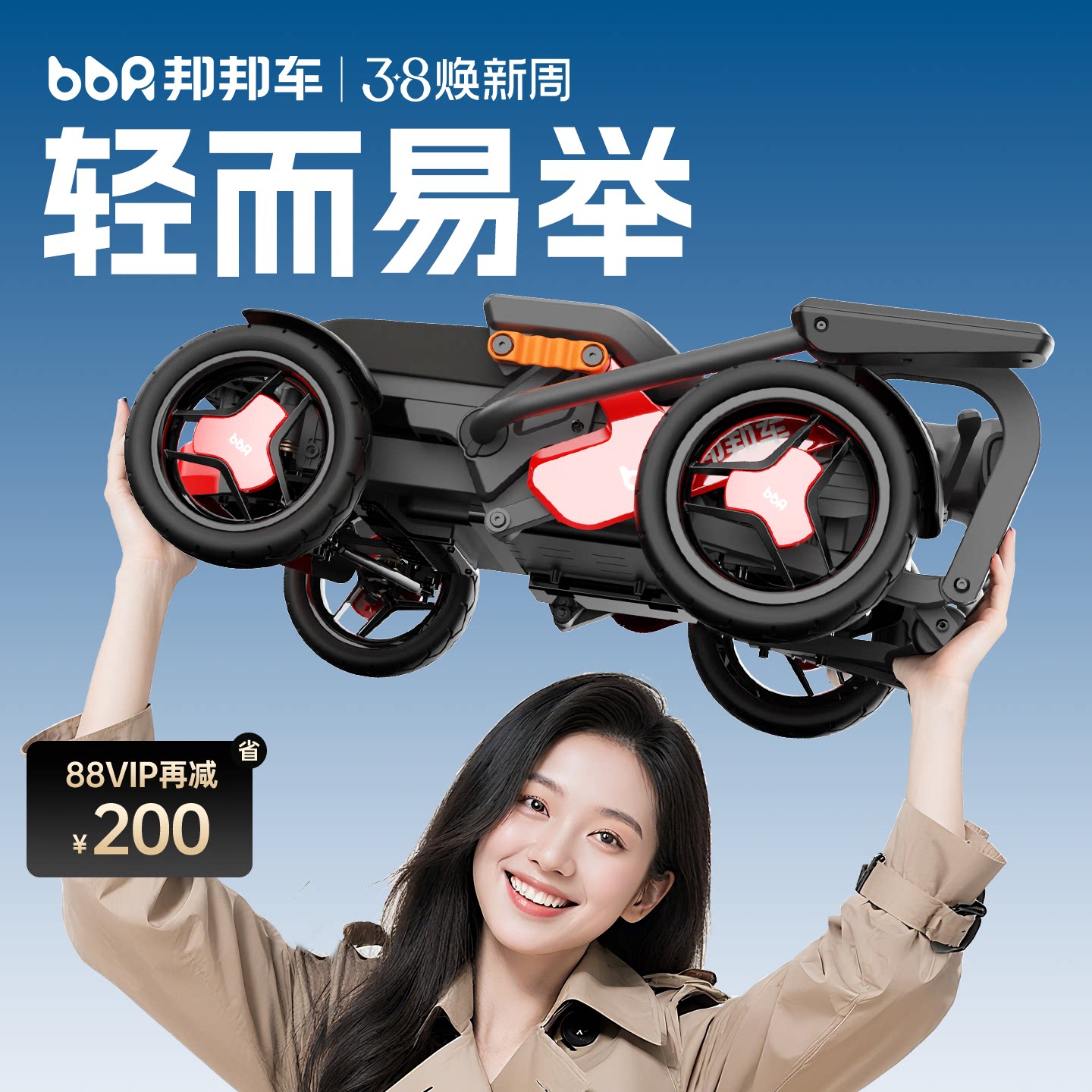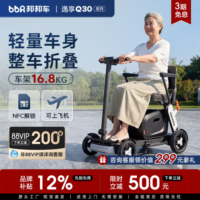 邦邦车老人电动代步车智能轻便可折叠旅行可上飞机高铁四轮代步车