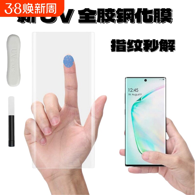 适用三星S20/S20+/S20Ultra/Note10钢化膜全胶曲面屏UV膜高清防指纹无白边手机保护贴膜sansung玻璃硬盖乐世