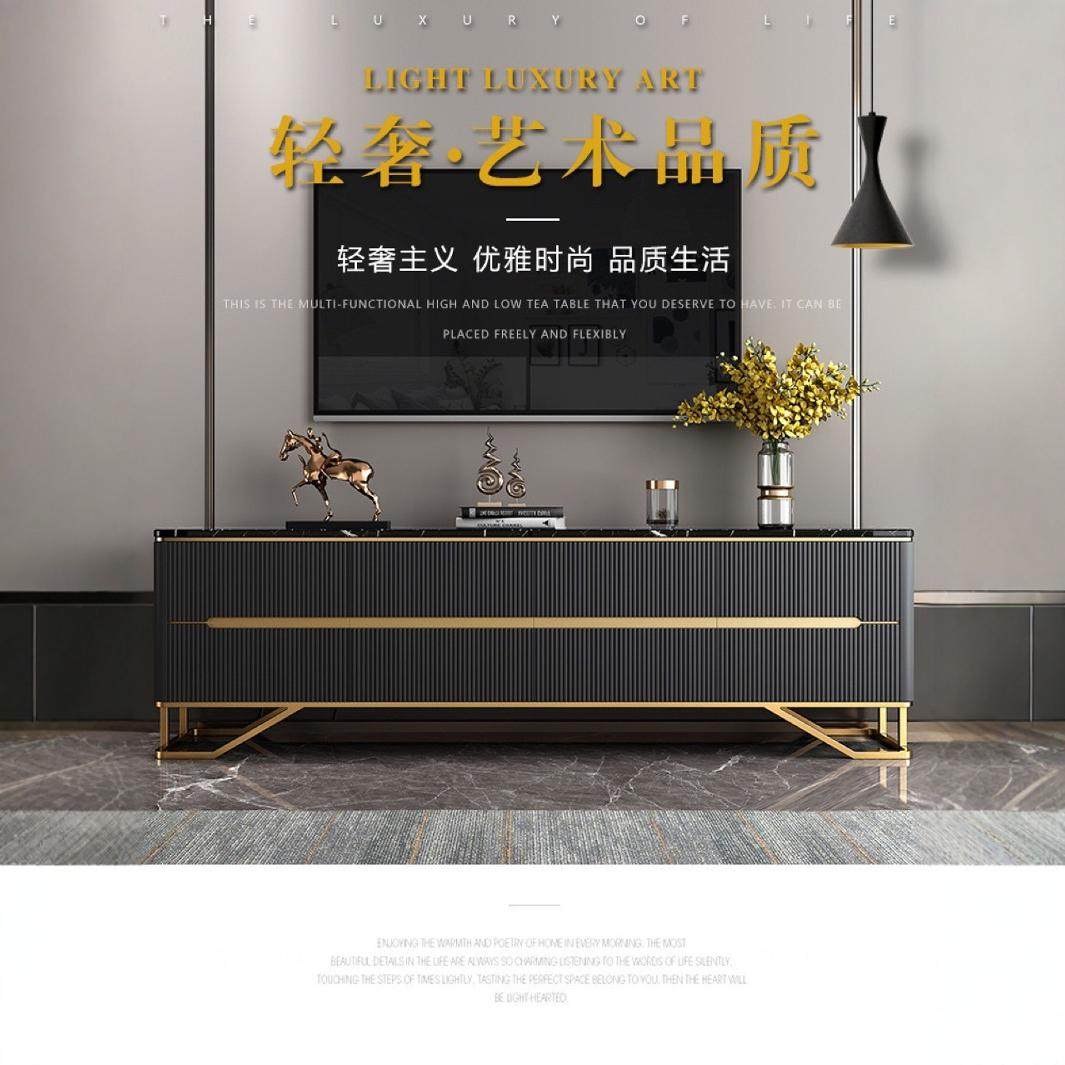 轻奢美式电视柜茶几组合简约现代小户型客厅家用大理石地柜电视墙