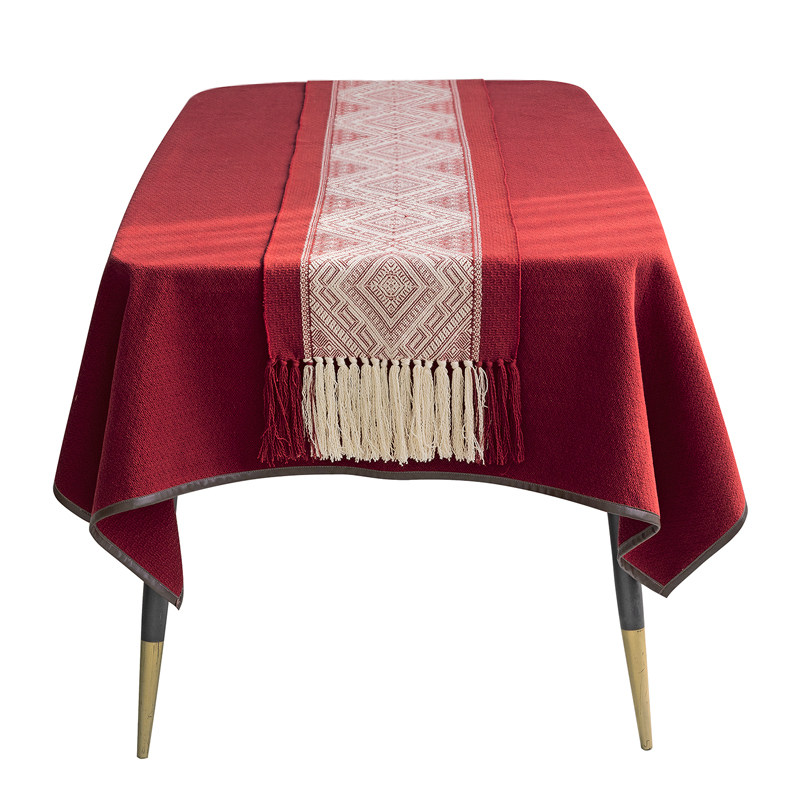 新年红色桌旗装饰棉麻手工流苏桌旗美式电视柜茶几玄关.装饰布床