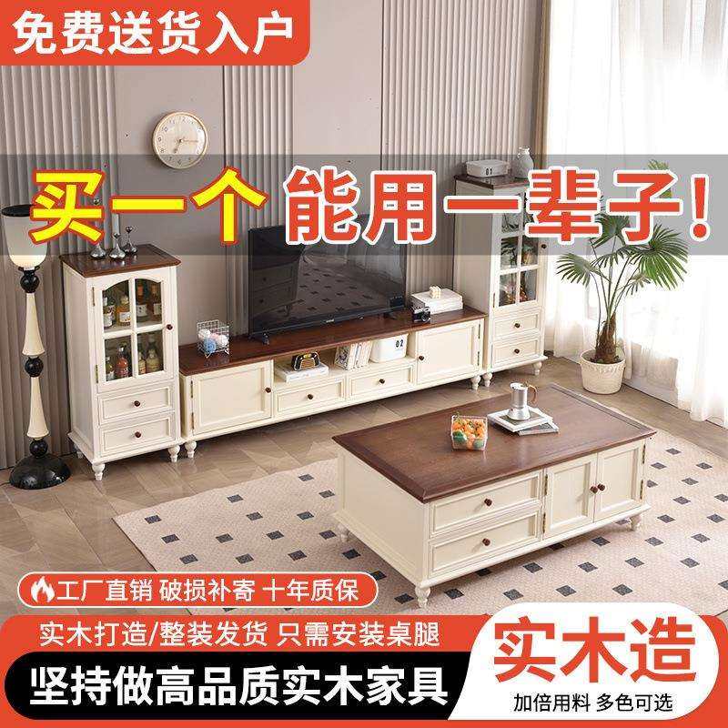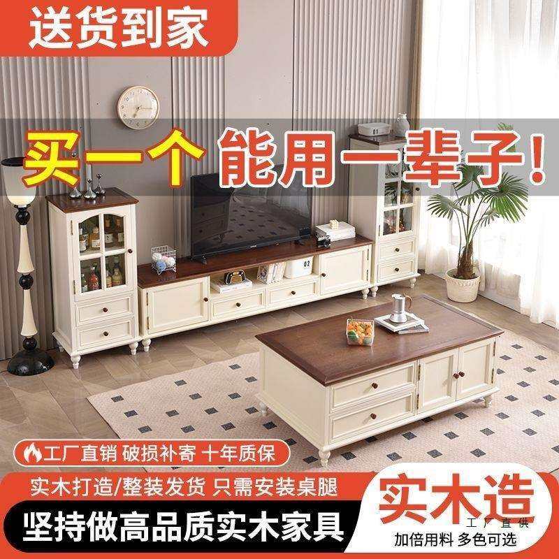 实木电视柜现代简约小户型轻奢客厅家用经济型美式电视柜茶几组合