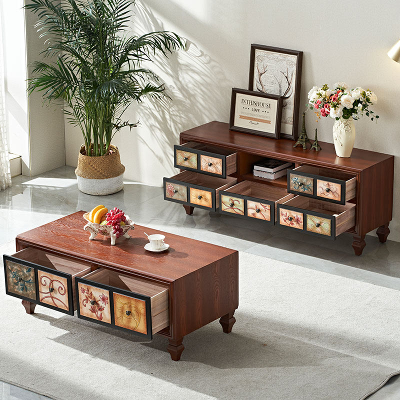 美式电视柜茶几组合小户型复古欧式实木电视机柜客厅家用别墅地柜