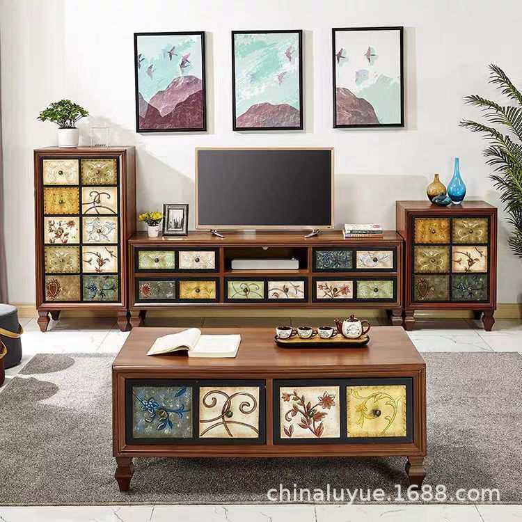 美式电视柜茶几组合简约现代小户型客厅地柜收纳柜落地小型储物柜