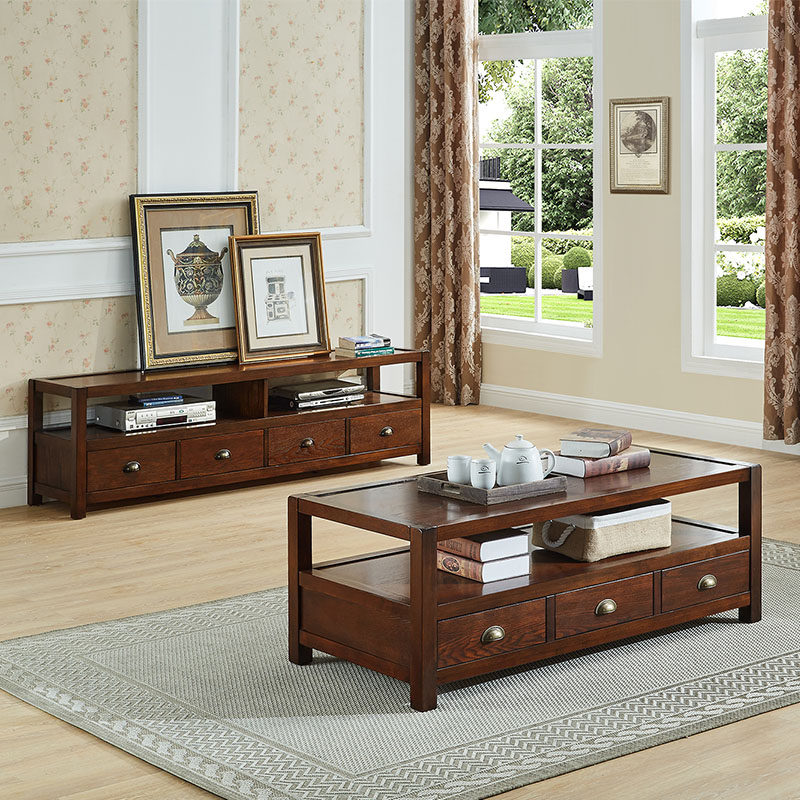 美式电视柜茶几组合套装客厅乡村简约实木电视机柜储物柜地柜家具