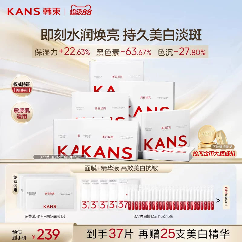 韩束377面膜美白补水保湿烟酰胺去黄气暗沉提亮肤色淡斑抗皱紧致