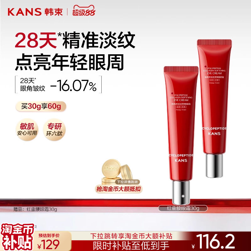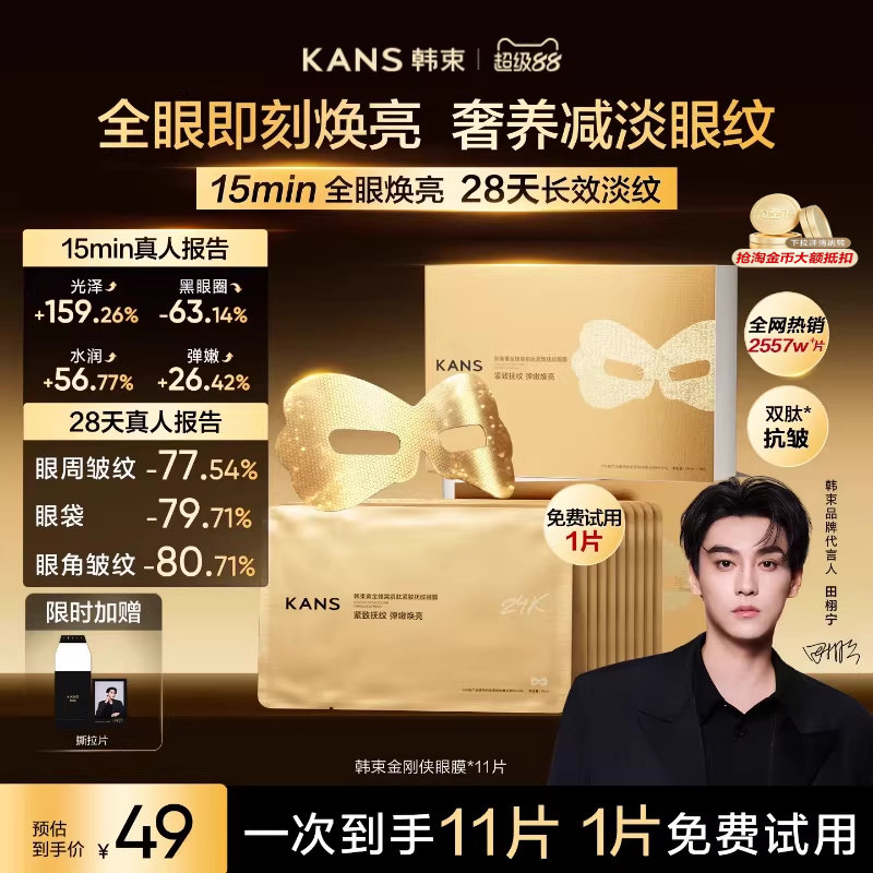 韩束黄金胶原炮金刚侠眼膜贴补水抗皱紧致抗衰保湿淡化细纹黑眼圈