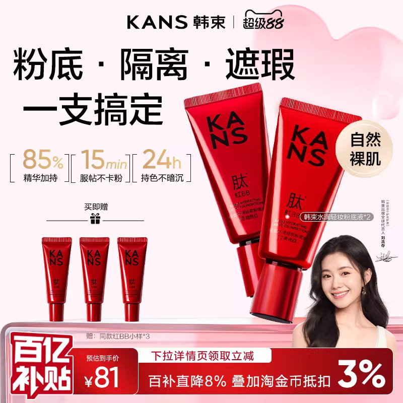 韩束红bb霜素颜霜美白遮瑕不脱妆有色粉底修容持久防汗隔离裸妆