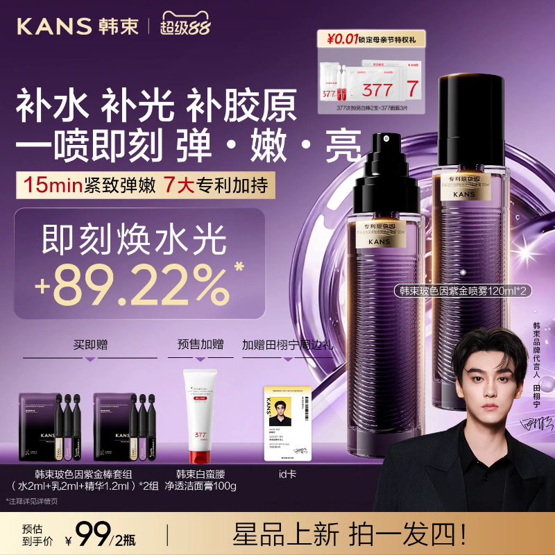 【田栩宁同款】韩束玻色因紫金喷雾补水爽肤水抗皱紧致精华水护肤