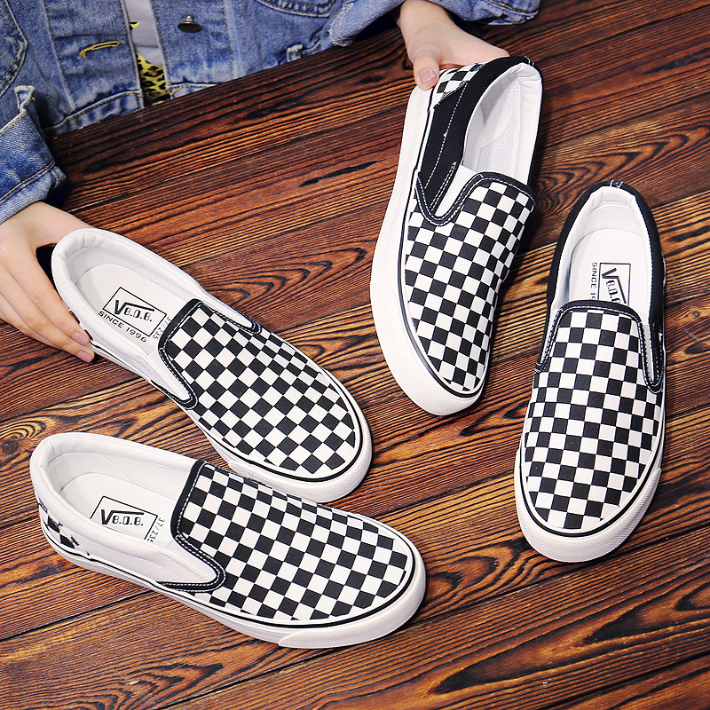 春季新款格子布帆布鞋女韩版一脚蹬百搭休闲鞋街拍港风软底单鞋潮