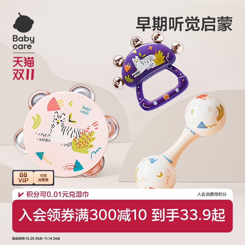 babycare手摇铃婴儿玩具0到3个月铃鼓幼儿新生儿宝宝抓握训练益智