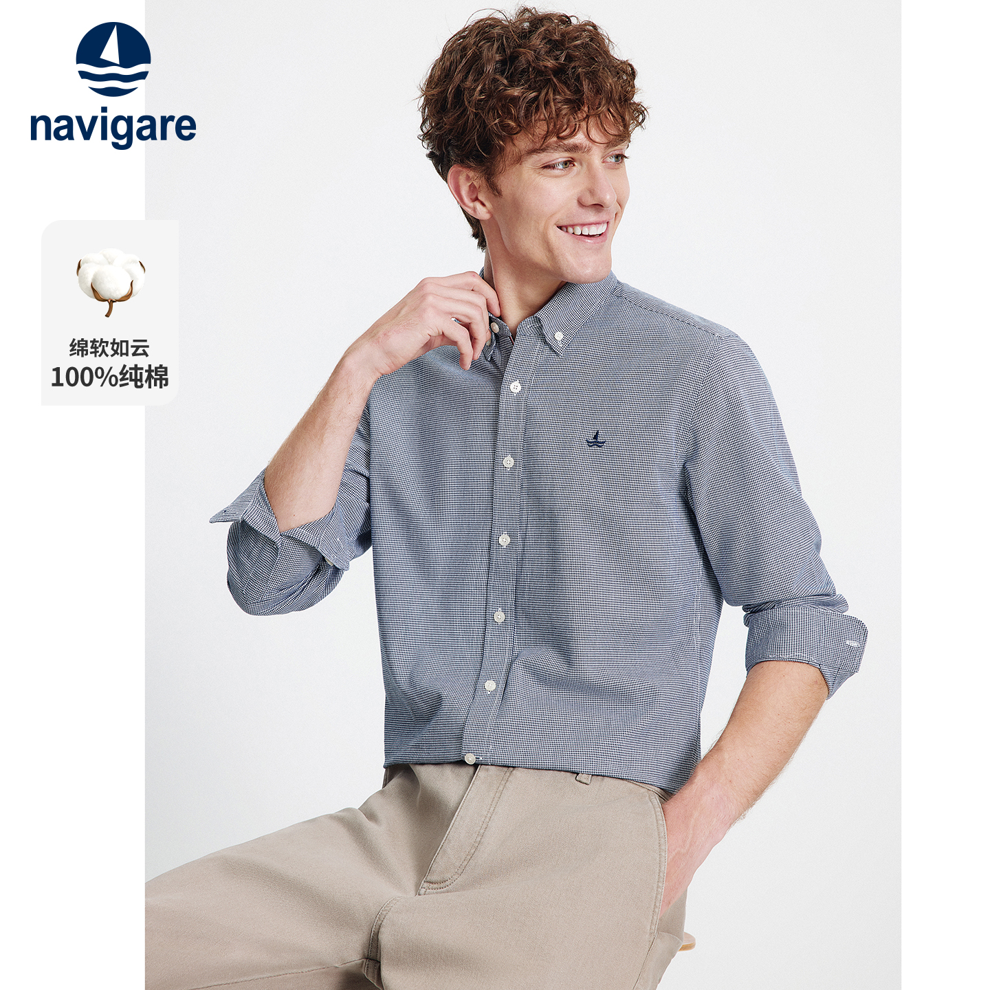 Navigare意大利小帆船休闲格子衬衫男25秋季新款纯棉通勤长袖衬衣