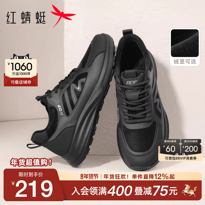 安踏厚底舒适休闲鞋男鞋2025冬季新款黑色百搭运动鞋子112548893