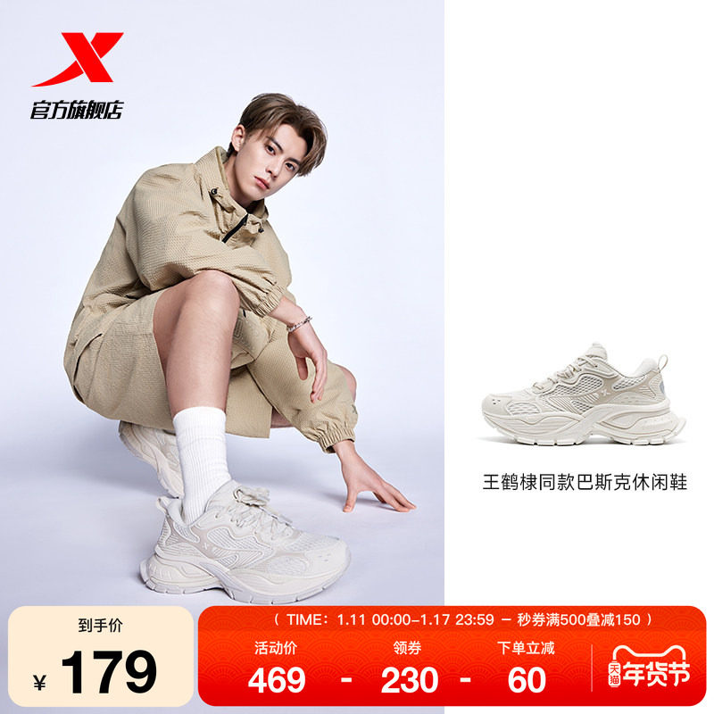 王鹤棣同款丨特步巴斯克休闲鞋男女增高轻便正品舒适运动鞋老爹鞋