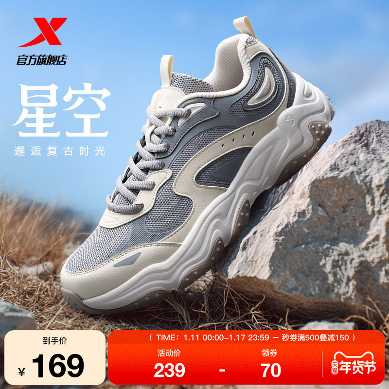 特步星空休闲鞋男鞋冬季增高轻便百搭运动鞋户外复古老爹鞋女鞋子