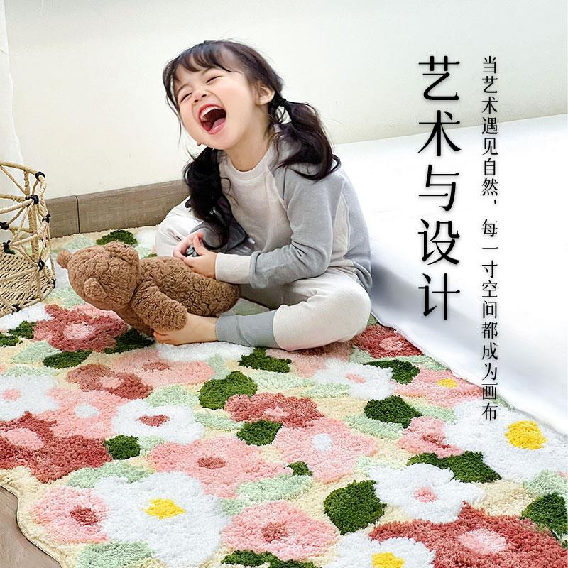 纳茉|小红花系列床边毯地毯中古卧室衣帽间长条簇绒家用加厚地垫
