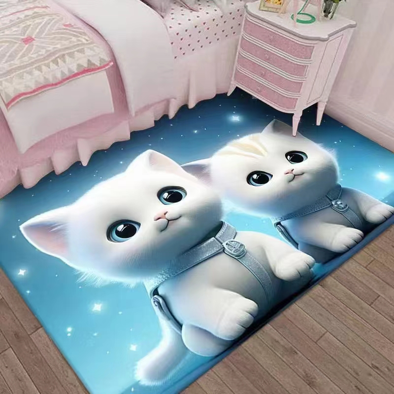 萌系卡通卧室床边地毯细腻绒面四季通用落地窗前家用防滑地毯地毯