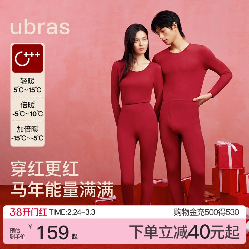 ubras本命年红色含羊毛保暖内衣套装男女结婚生肖马新年秋衣秋裤