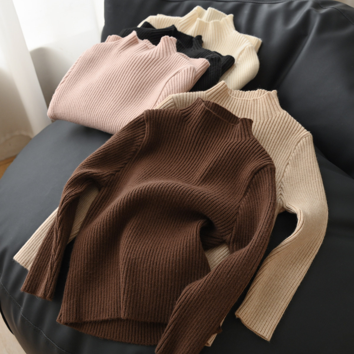 儿童纯色毛衣 坑条弹力针织衫 女童半高领打底保暖上衣中大童冬款