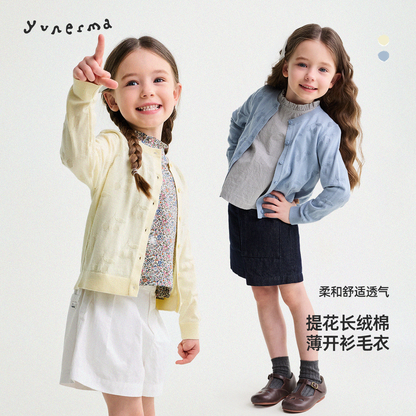 允儿妈女童夏季100支长绒棉针织防晒衫 儿童气质空调衫薄款开衫潮